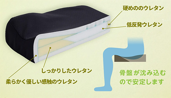 | 3. 硬さの異なる4種類のウレタンフォームを複数組み合わせ、姿勢保持と体圧分散を実現 |
