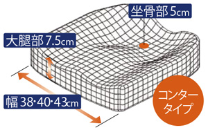 コンタータイプより沈み込みが少なく、誰にでもなじみやすい安心の形状。