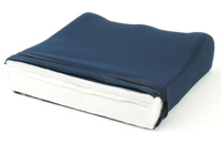 | 滑り止め加工がついている 面を下にして置いてください。 クッション後端は、車いすバックサポートの形状に沿うような形(R形状)になっています。 |