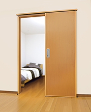 開き戸を、引き戸や折れ戸、アコーディオンカーテンなどに取り替えて、移動の円滑化、介助スペースの確保を行います。